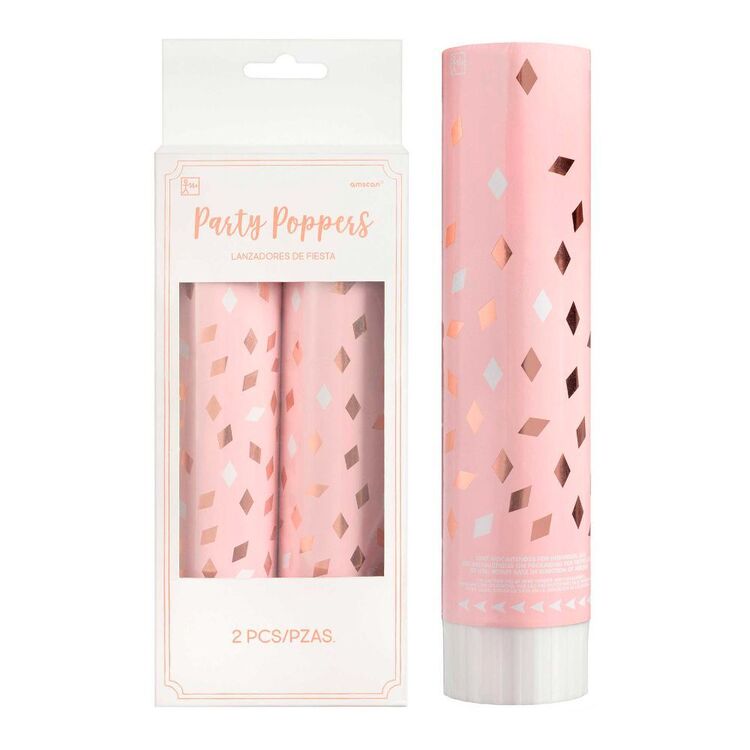 Blush Birthday Foil Confetti Popper 2 Pack Rose Gold, Pink & White